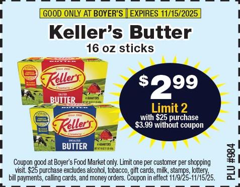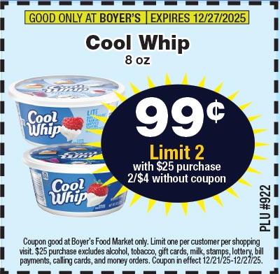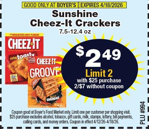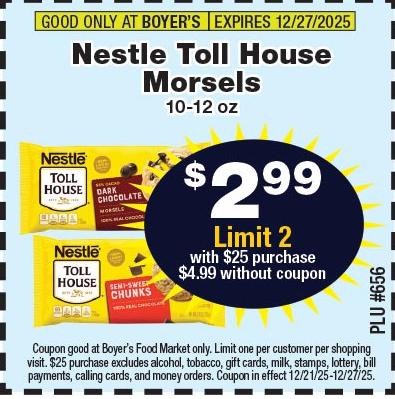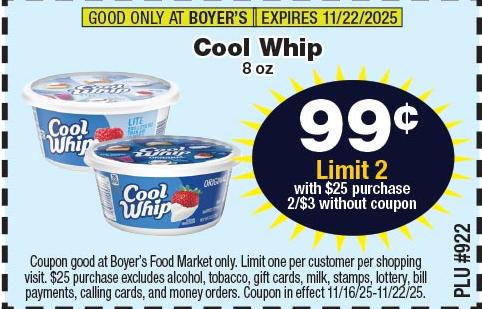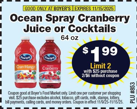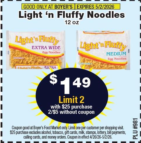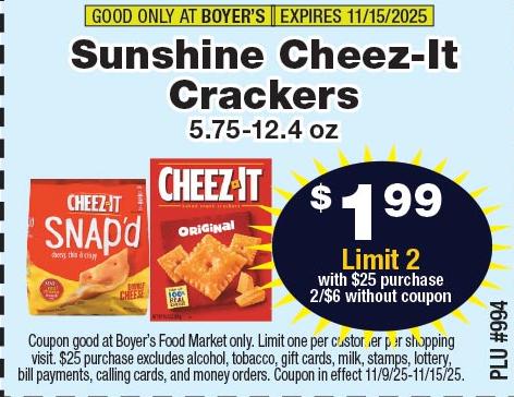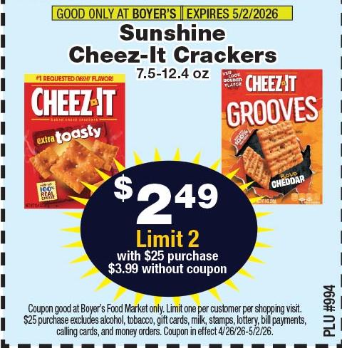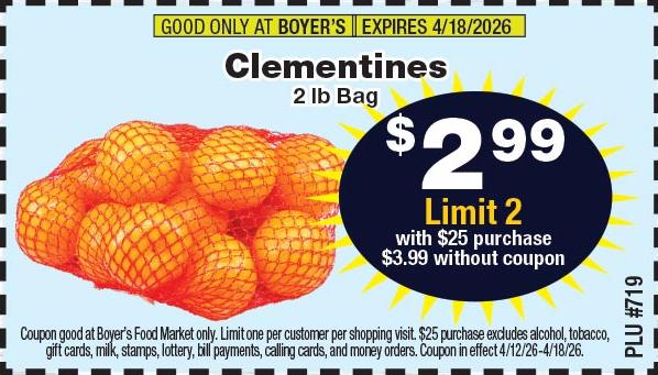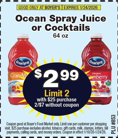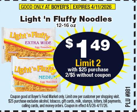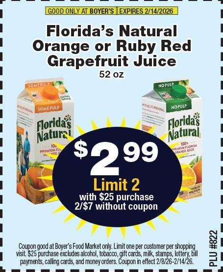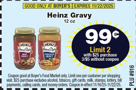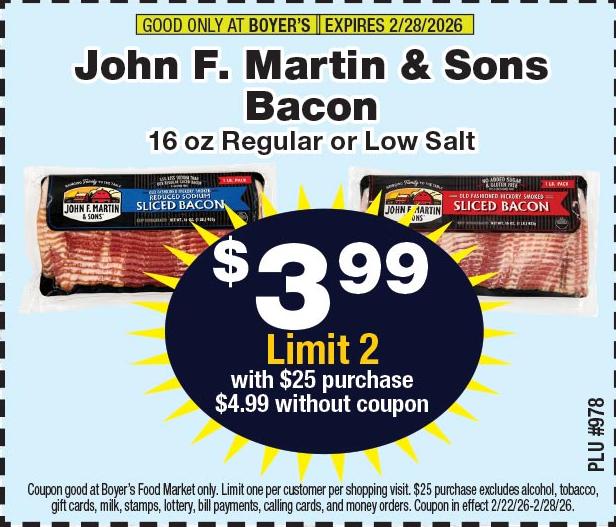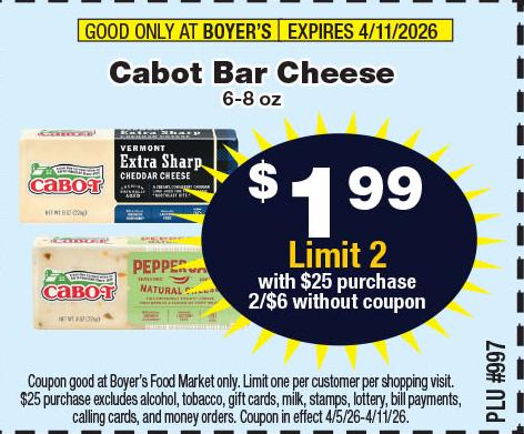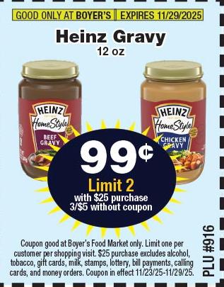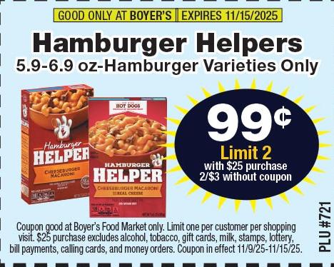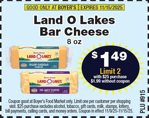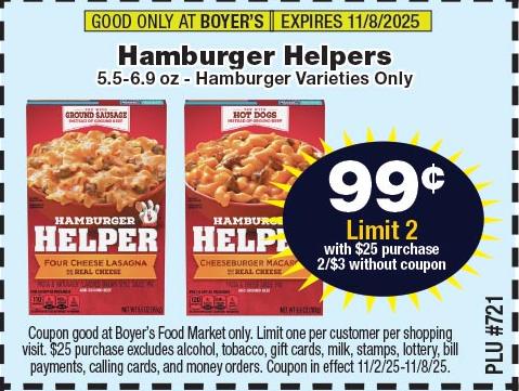 Boyer's now makes it even easier to build your shopping list and save money. Just click on the category or categories you want and review all the items currently on sale at Boyer's in that category. Plus in each category you will find general items you may need to round out your shopping list.